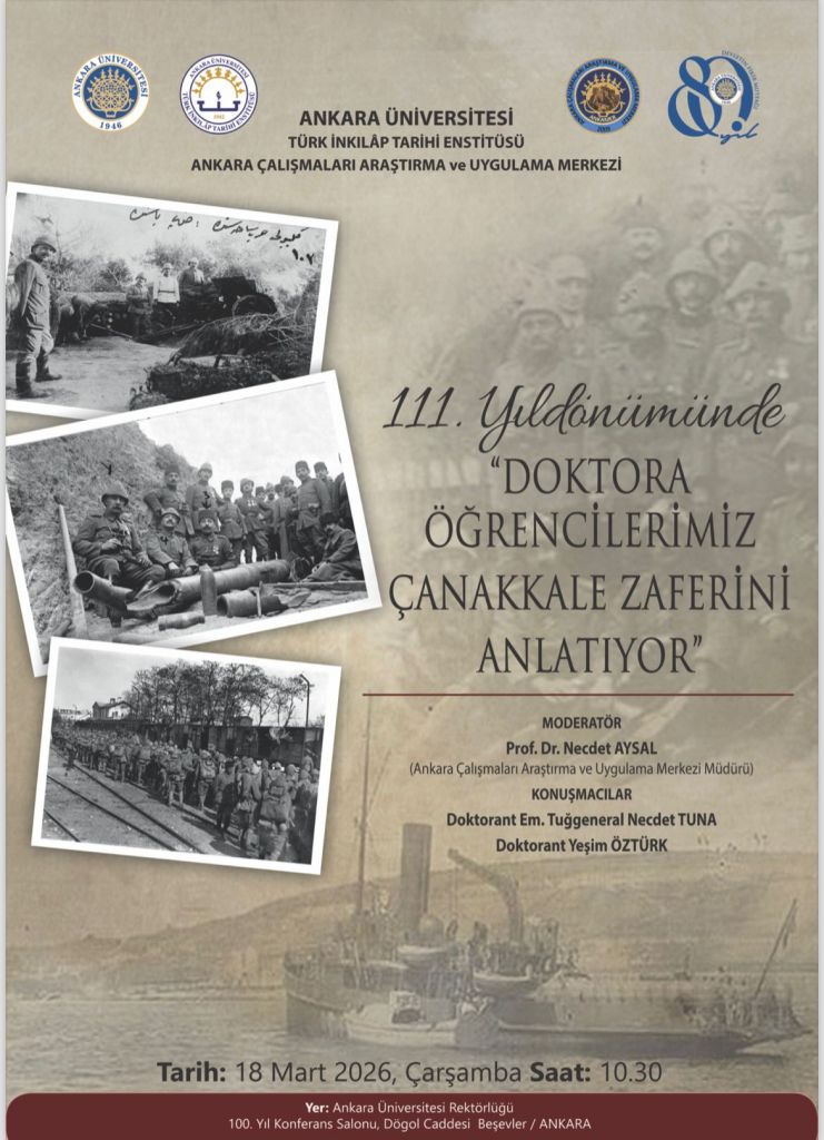 18 Mart Çanakkale Zaferi münasebetiyle düzenleyeceğimiz “111. Yıldönümünde Doktora Öğrencilerimiz Çanakkale Zaferi’ni Anlatıyor” konulu panelimize katılımlarınızı bekliyoruz.